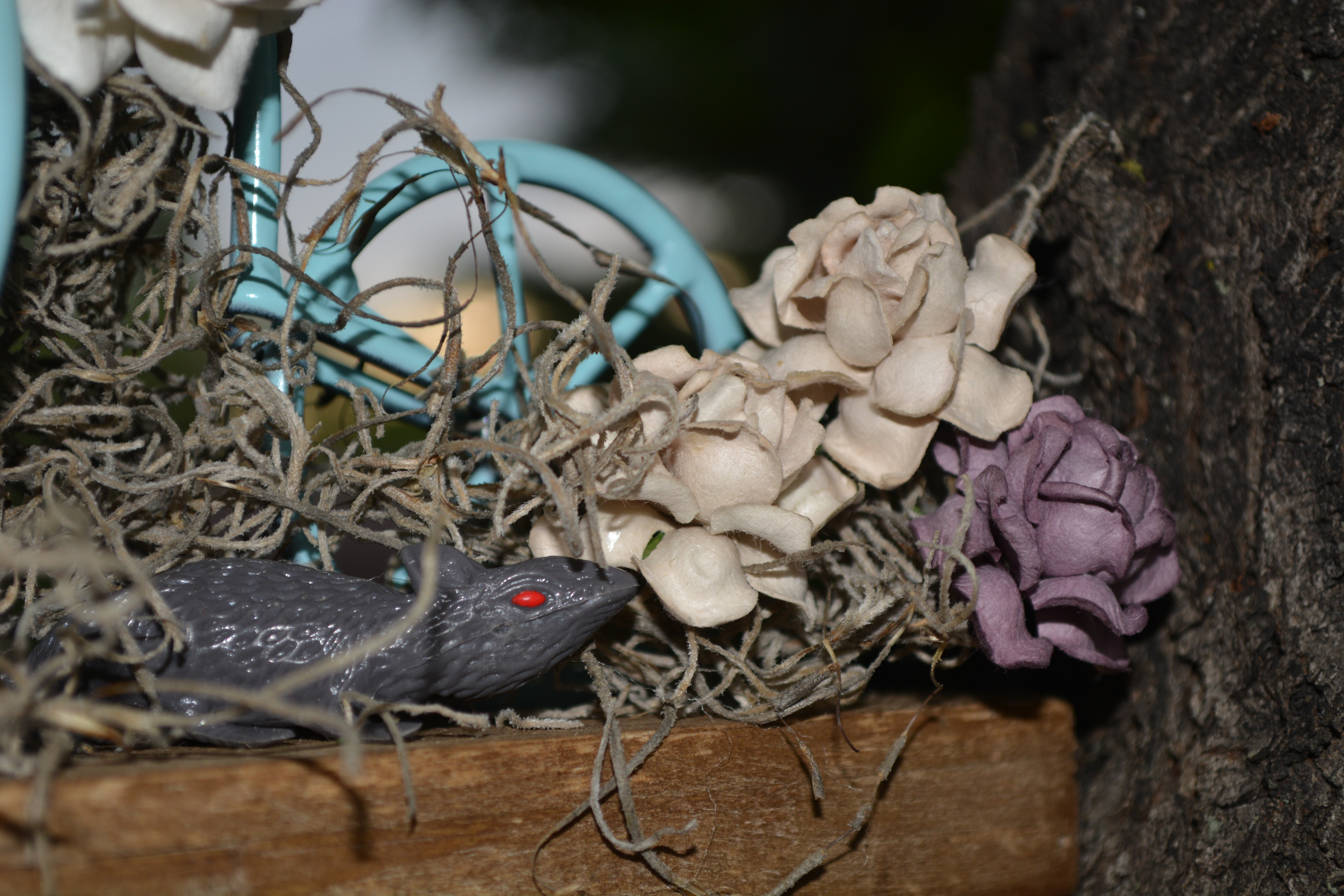 My mind works in different ways (go figure!), when it comes to me “altering” or decorating something my mind goes to one place… Halloween (yes, YES! I know it’s summer and I am a few months early but that is okay… right?) When I decorate for Halloween I always think like overgrown house in the middle of forest, and that is how I decorate my house at that time of the year… so I ran with it… pretty with some twisted and creepy things thrown in.