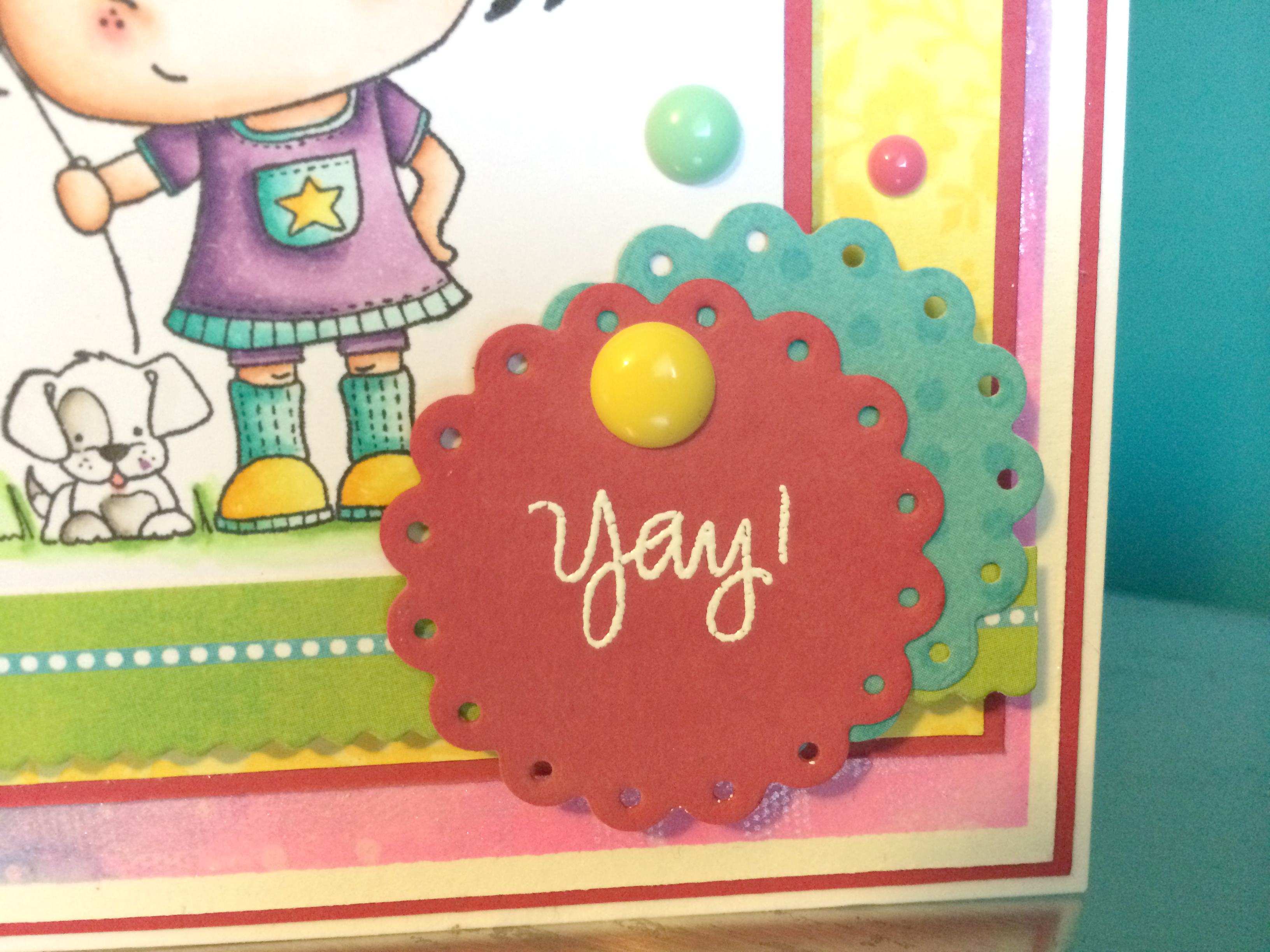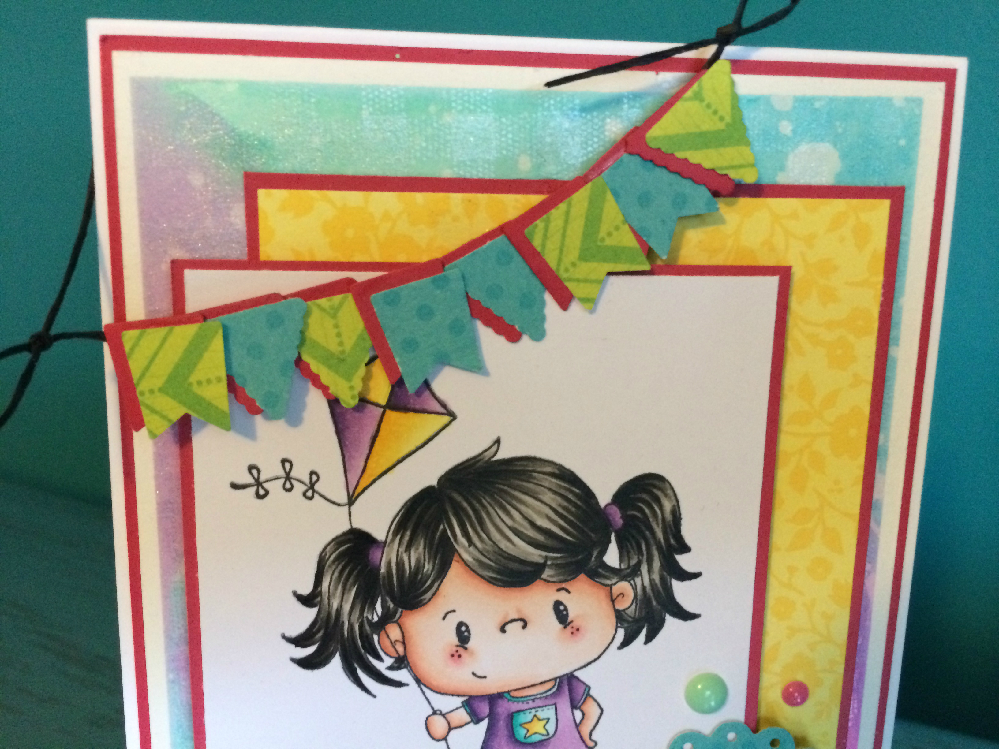 I used a fun little image Pollycraft Breeze Rubber Stamp from CC Designs, she is coloured with my Copic Markers. All the patterned paper used in this card is from Bo-Bunny Lemonade Stand 6×6 paper pad.