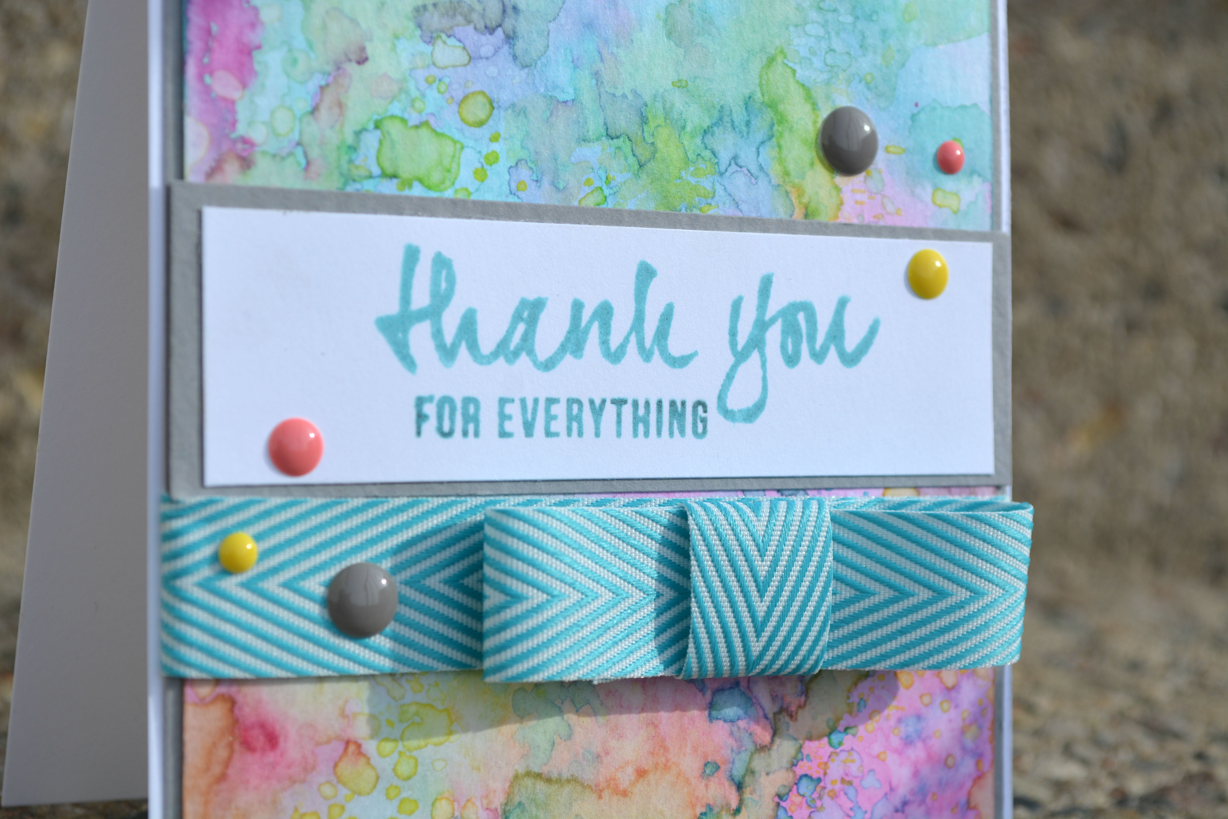 Then on a white panned I stamped the Thank you sentiment from the Avery Elle set, the for everything is from a SSS set called Life is a Journey.