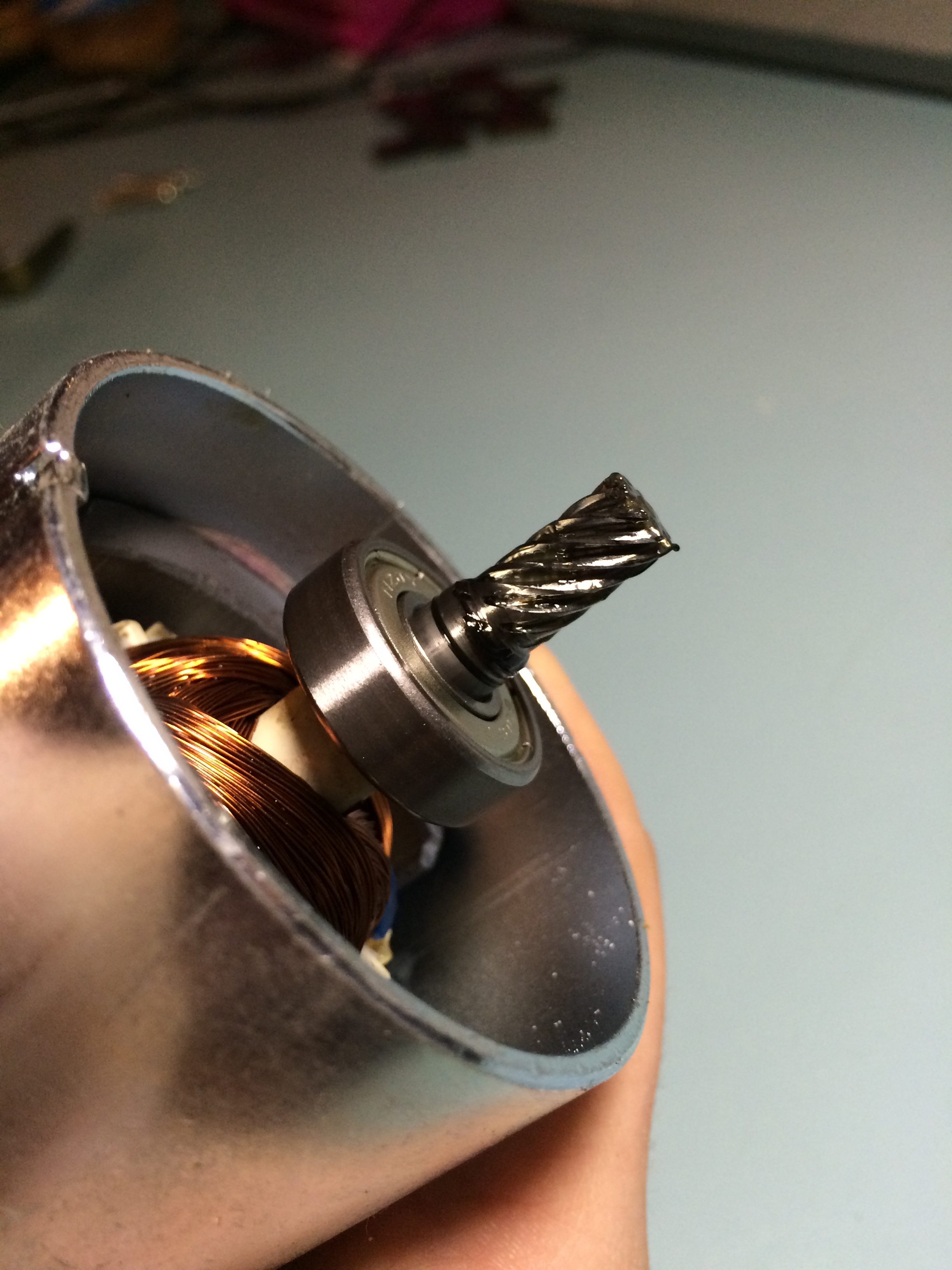 Then as you dig further into that, you find this magical piece. It is the real heart of the operation, the motor itself. It is also where my machine went all wrong… See the very top piece there… well it had metal shavings in it… bad bad bad.