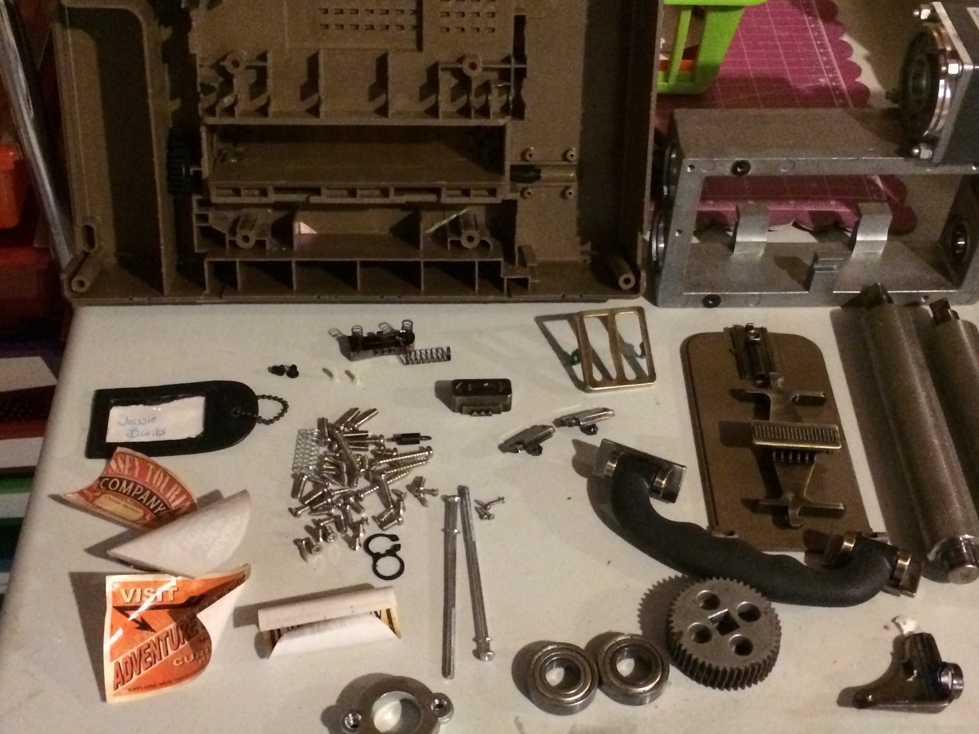 This is what a Tim Holtz Vagabond looks like taken apart… why you might as… well it was busted anyway and I was out of warranty. So what else was there to do with it? And that question continues now what do I do with it?