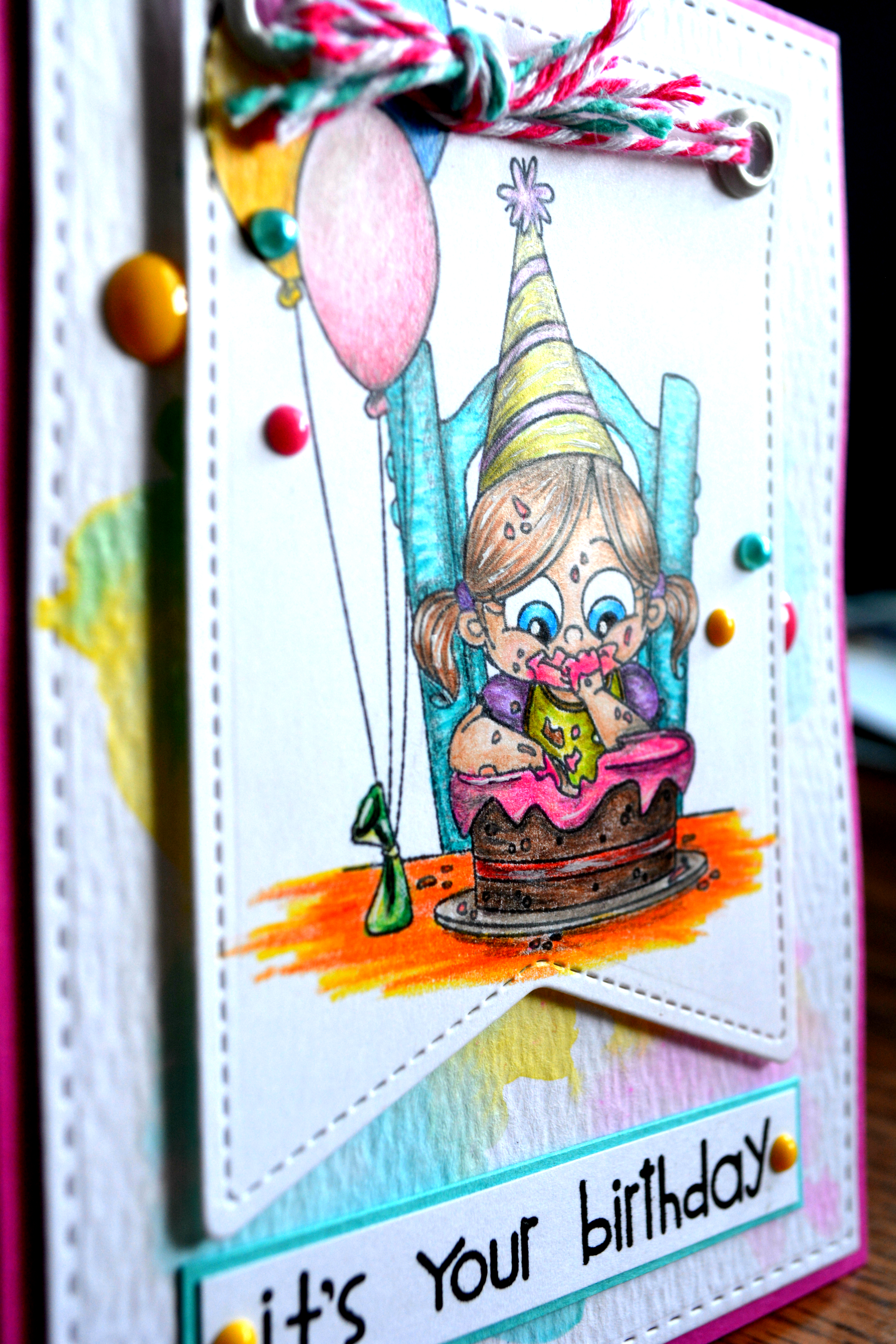 Kept this card rather simple with just a little watercolour and a simple black sentiment. A little twine and some enamel dots for embellishing.