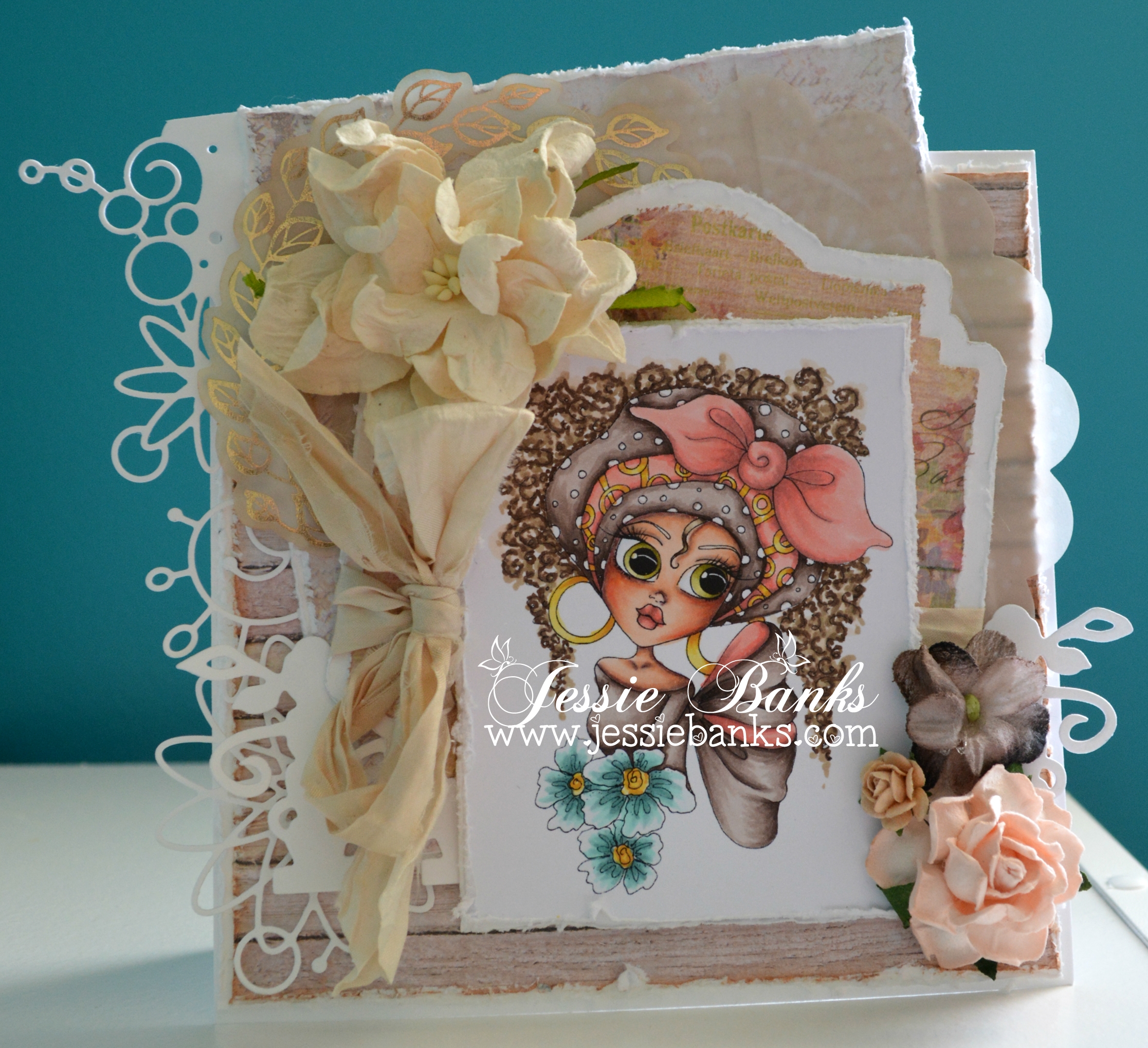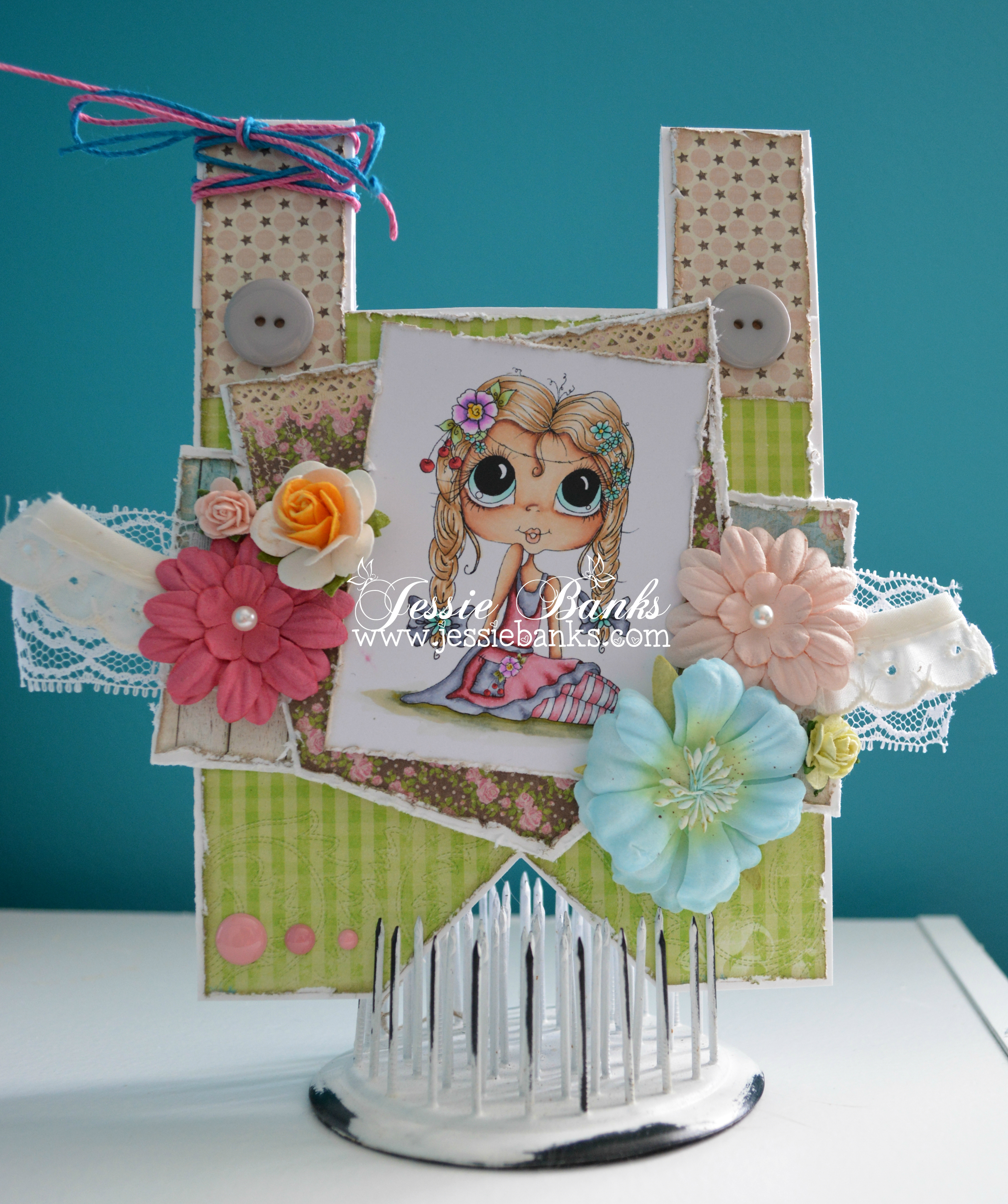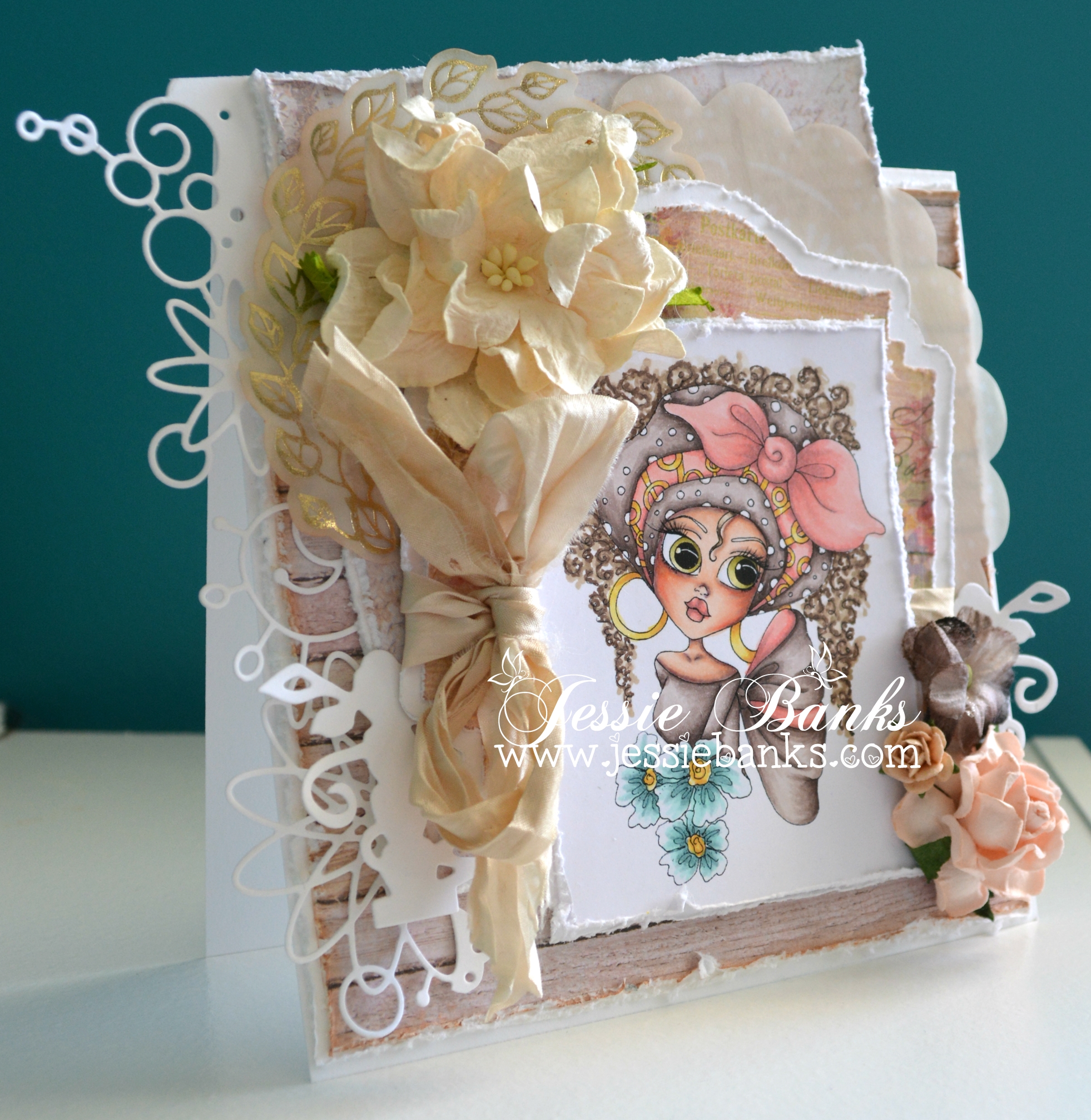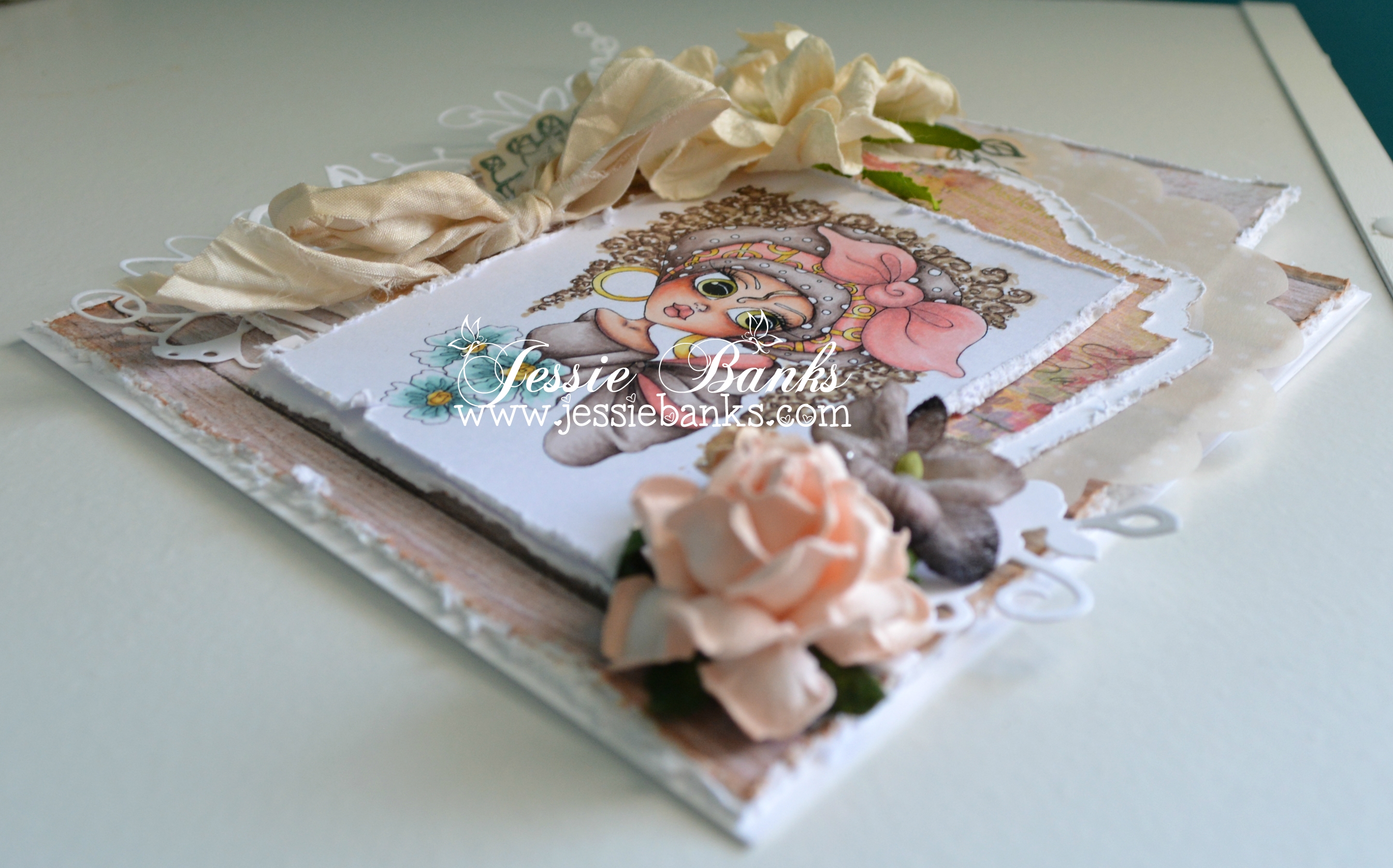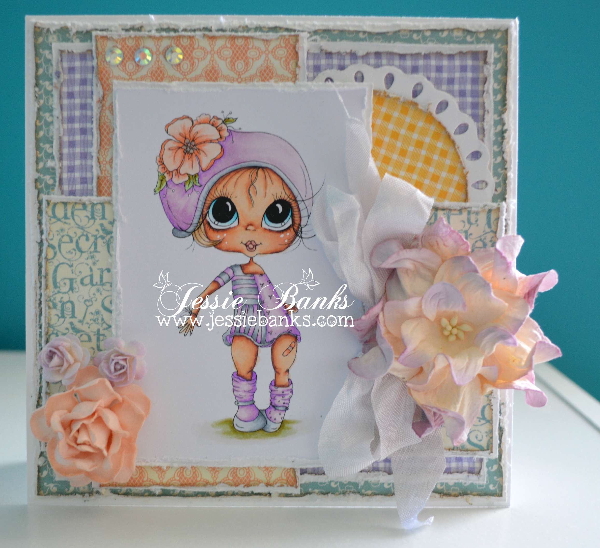 Some scrap papers from Scraptastic, and Amy tangerine, a doily and some WIld Orchid Crafts flowers finish off this card.