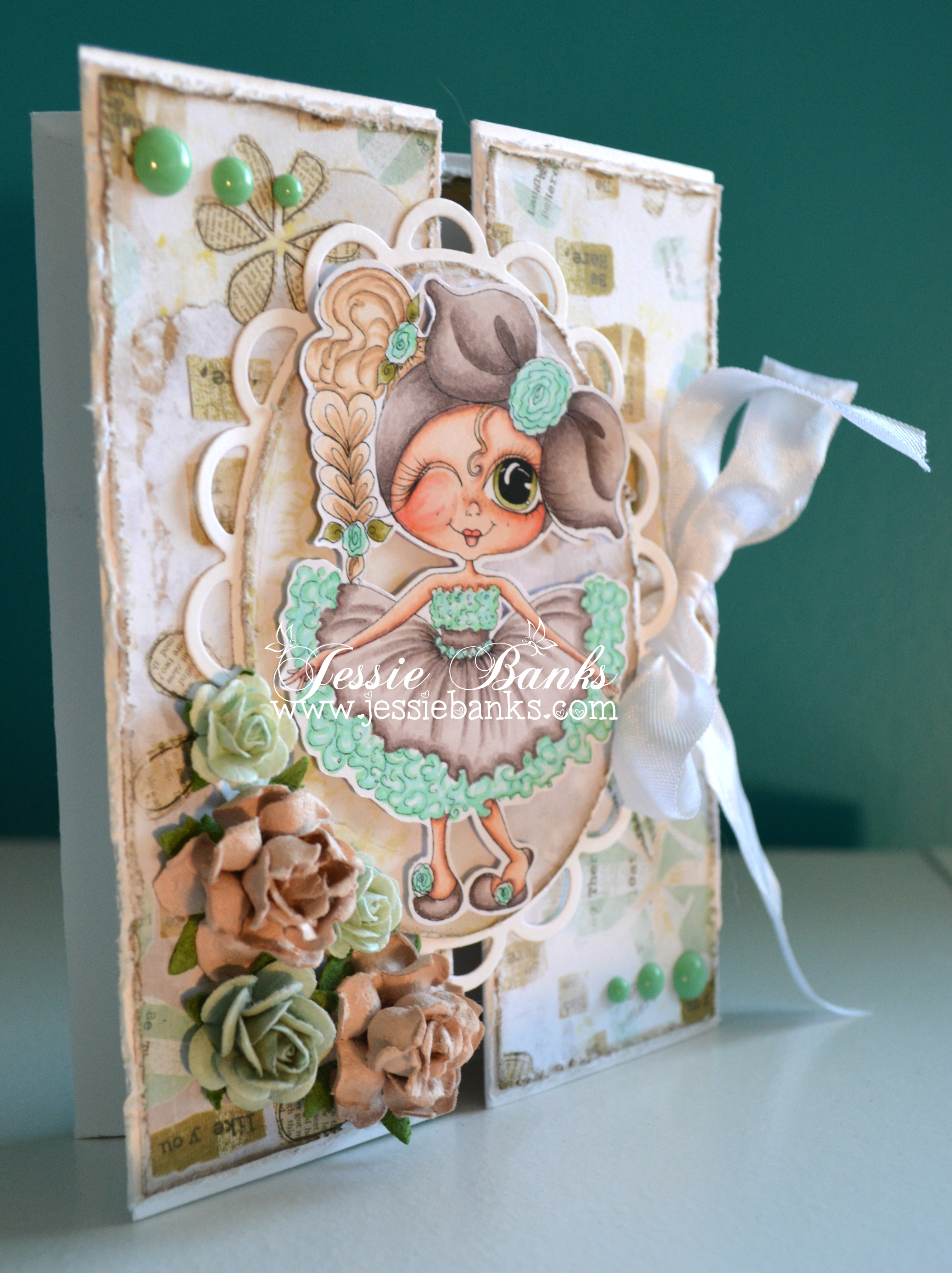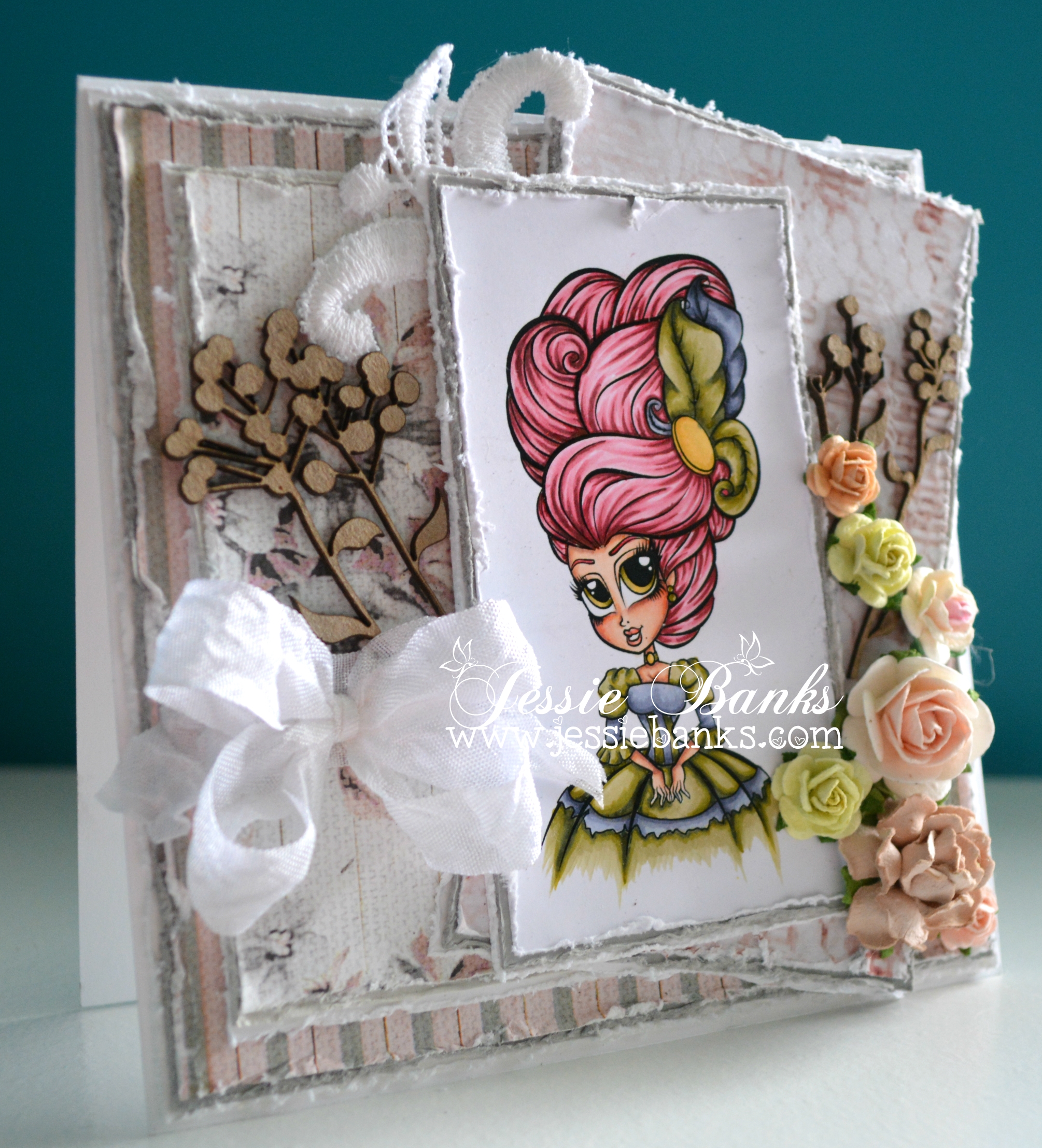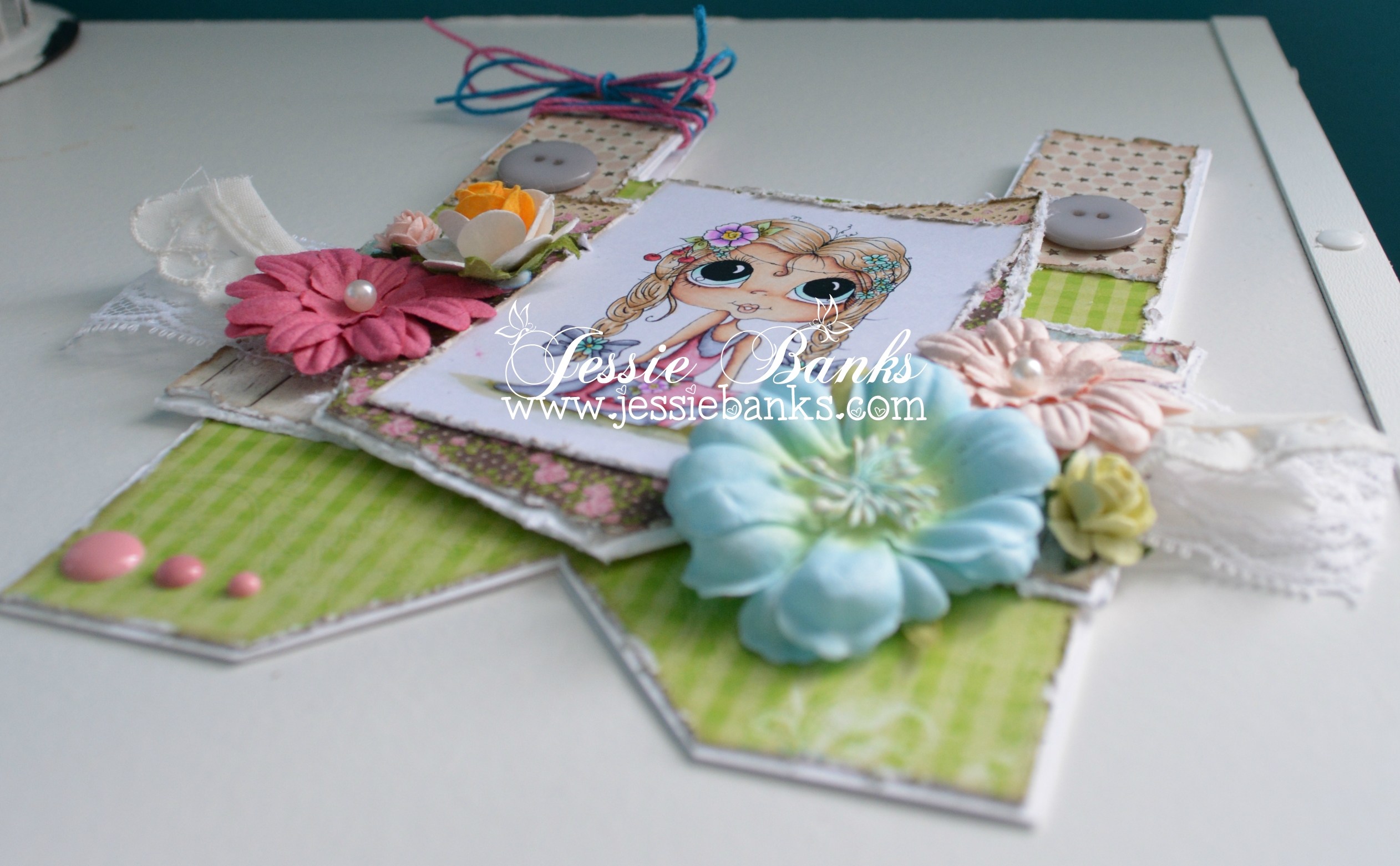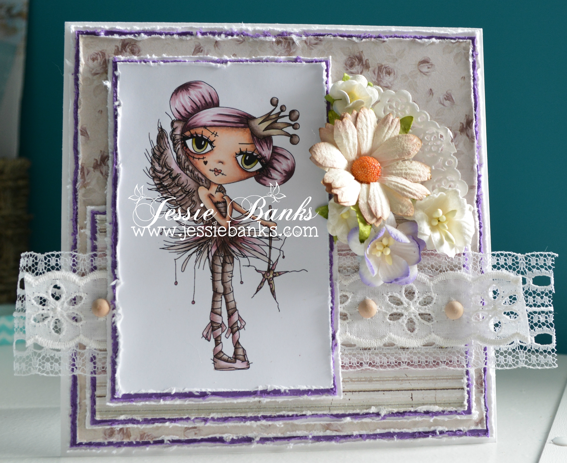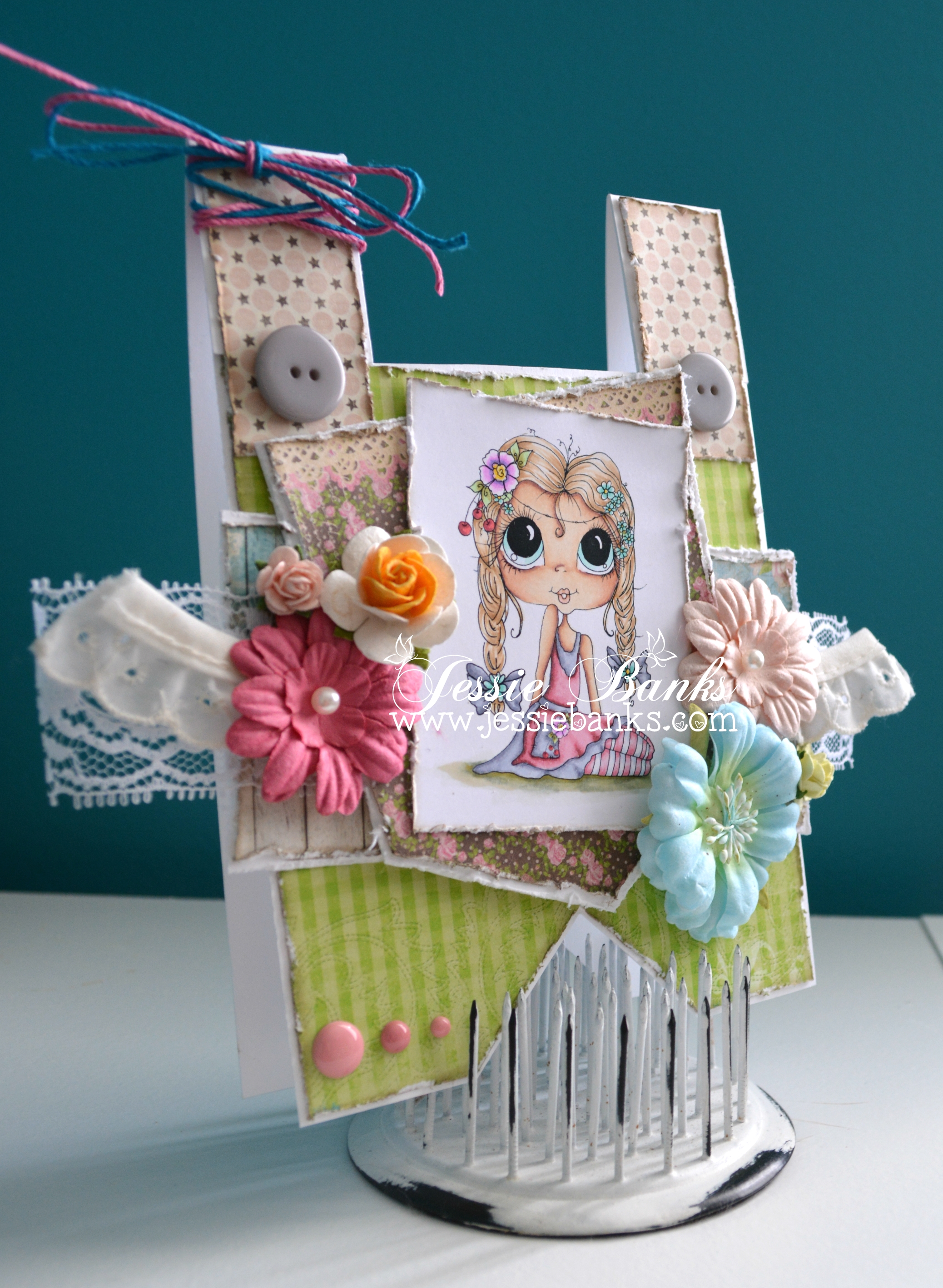 Some scrap papers from Scraptastic, and Amy tangerine, a doily and some WIld Orchid Crafts flowers finish off this card.