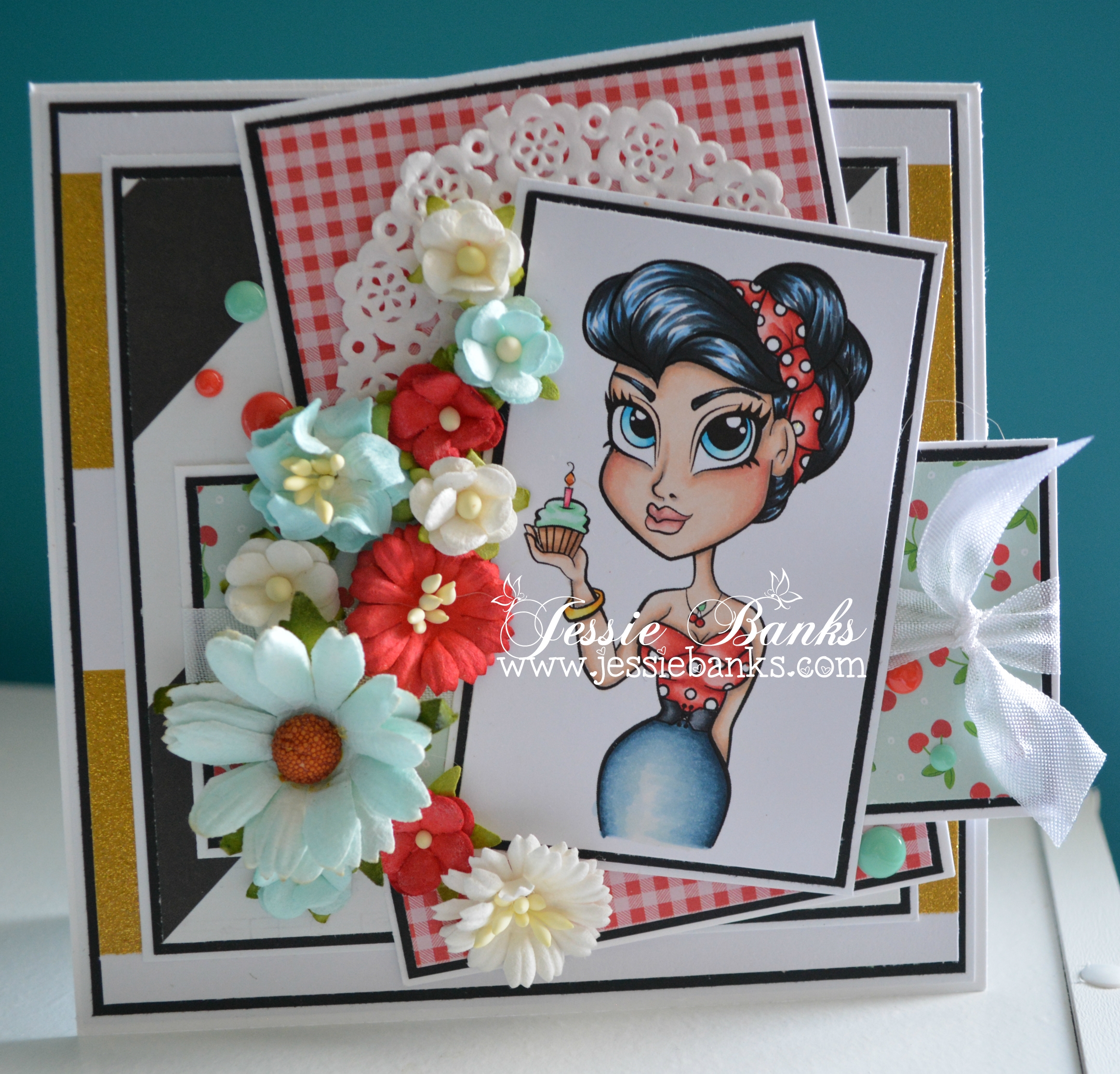 Hey everyone! Today’s card features Rockin’ Birthday Cutie from Simply B Stamps. I coloured her up with my copics.
