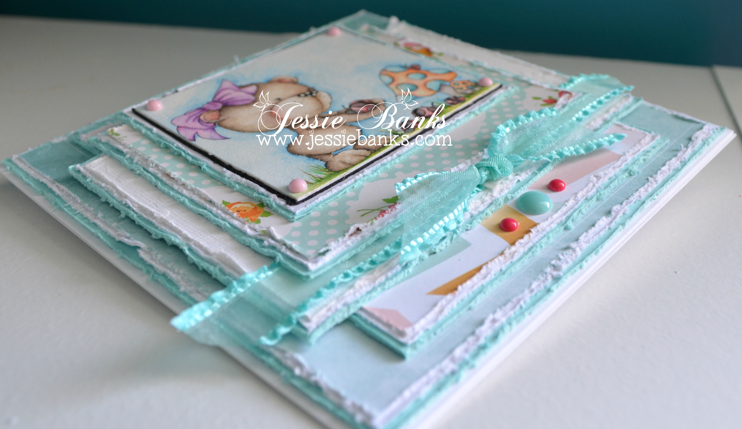 Layers of Grpahic 45 paper, some Wild Orchid Crafts Cosmo Daisies, and may arts ribbon finish off the front of this card.
