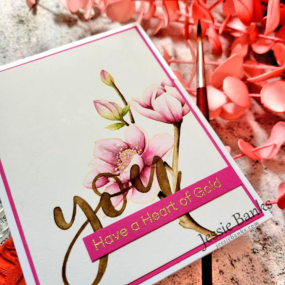 I pulled out my Art Philosophy (Prima) watercolours and the Magnolia Blossom set from MFT and went to town. ( I will link all products at the end of the blog post)