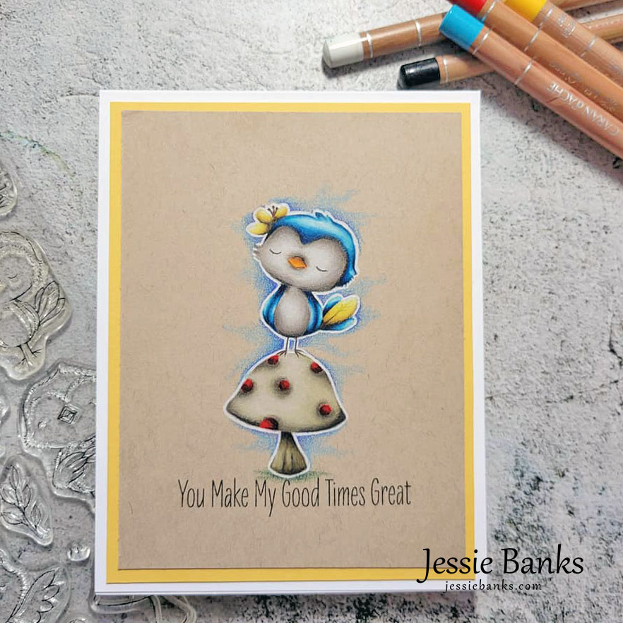 I have always loved the look of pencils on toned paper, kraft, gray, or black I love all of them with my coloured pencils. After slowly building up the layers to get the main image coloured up. I added a start white outline just to let the little bird pop off theback ground. Some gental scratchy colouring to give the feeling of a background really did finish this one off.