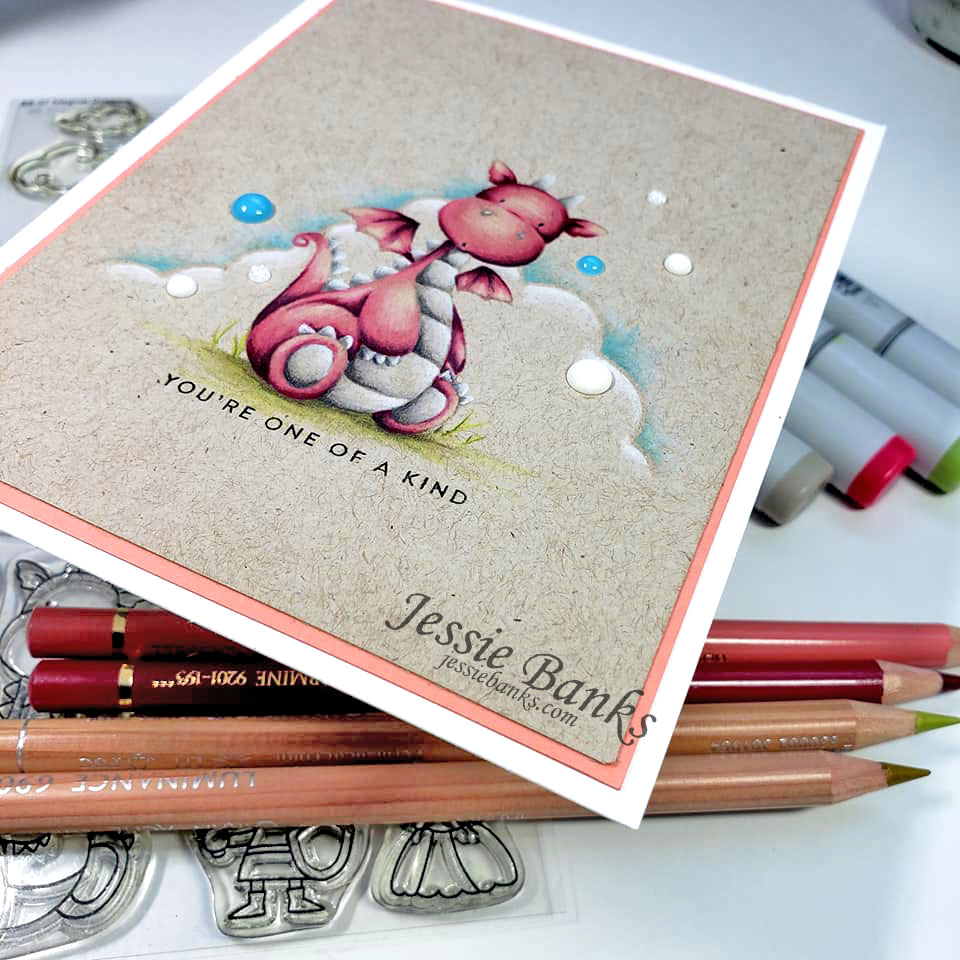 Stamping it with my Cement Gray ink pad, and pulling out my coloured pencils and getting to work!