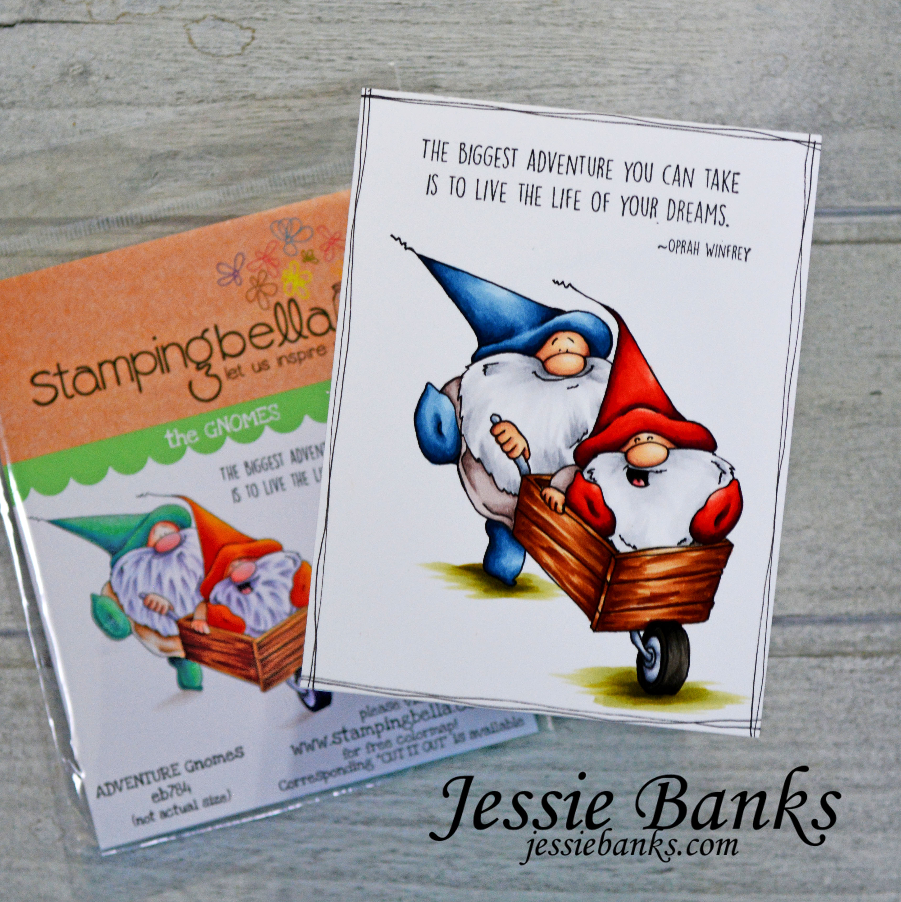 So, for my last card this month, I went back to my copic markers with Adventure Gnome.