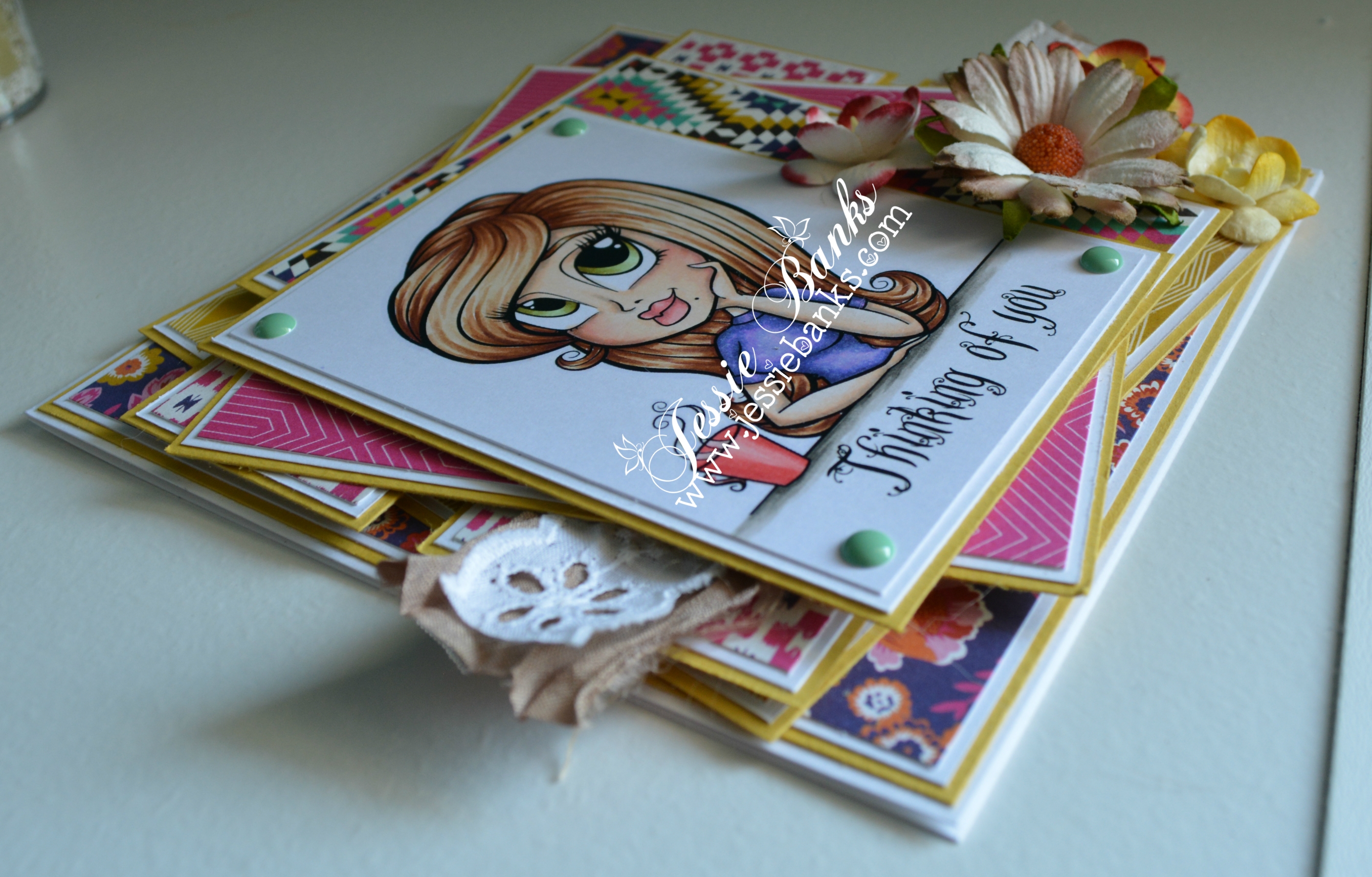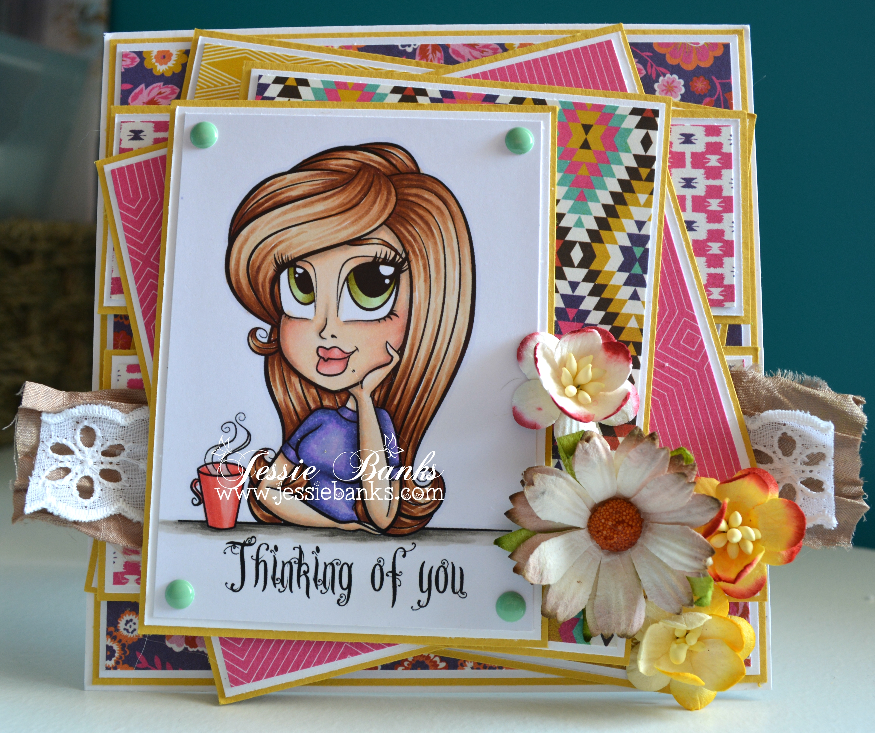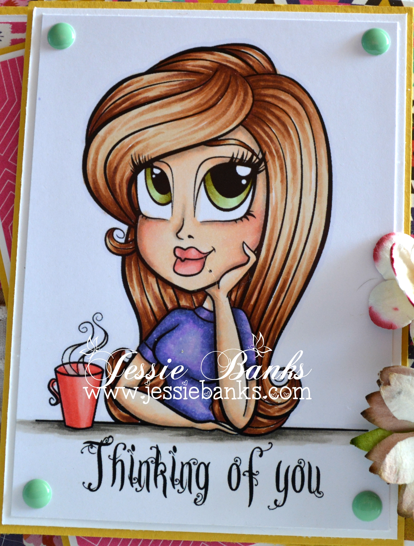 Hey everyone, today’s card uses Little Scarecrow Keri from Simply Betty Stamps. I coloured her up with my Copic Markers.