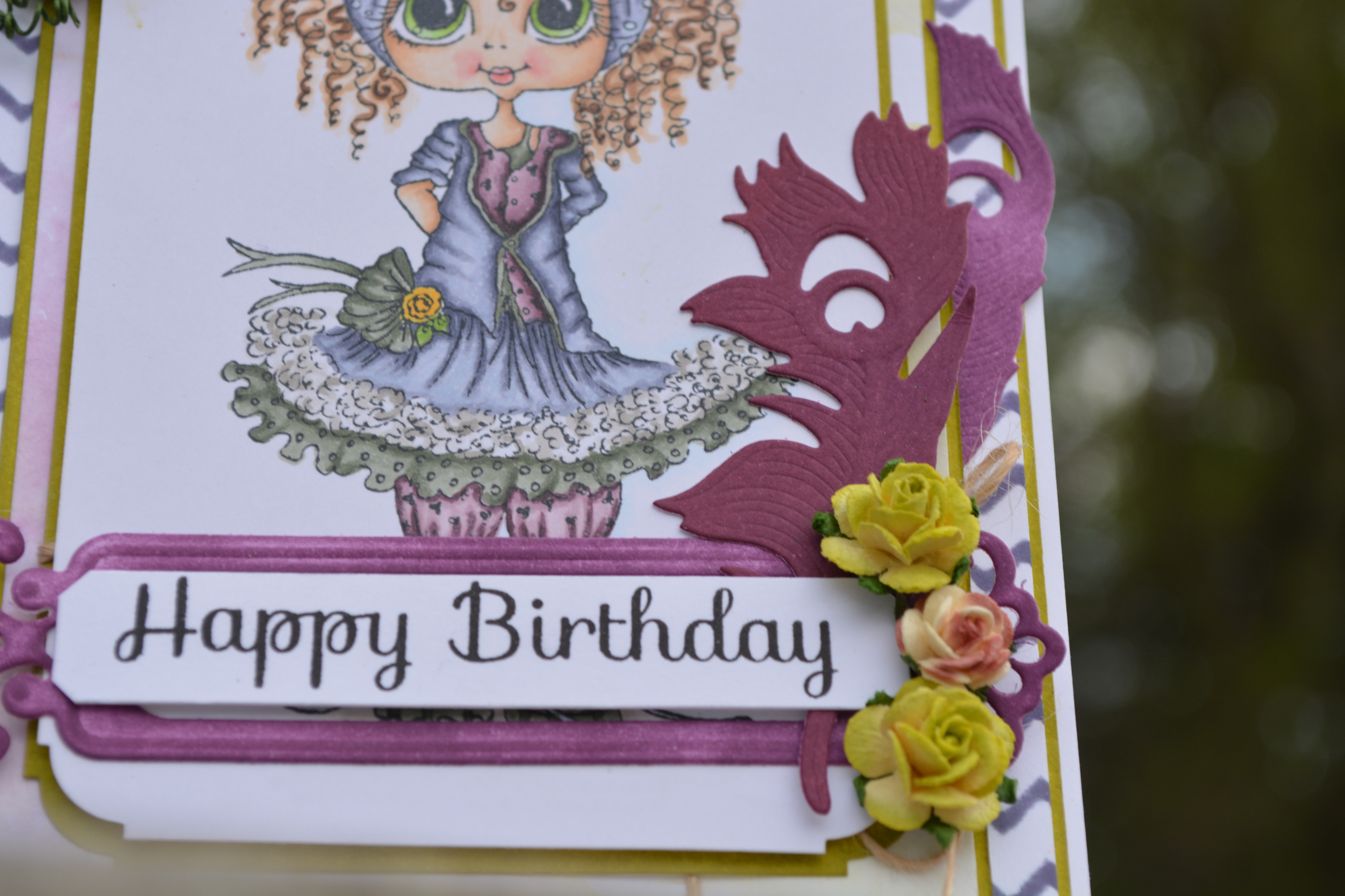 The circle is made with Gelato’s in some random colours, blue, pink, yellow, orange, grey, and purple. The butterfly stamp is a Martha Stewart one from 2009, and is stamped in Distress ink .