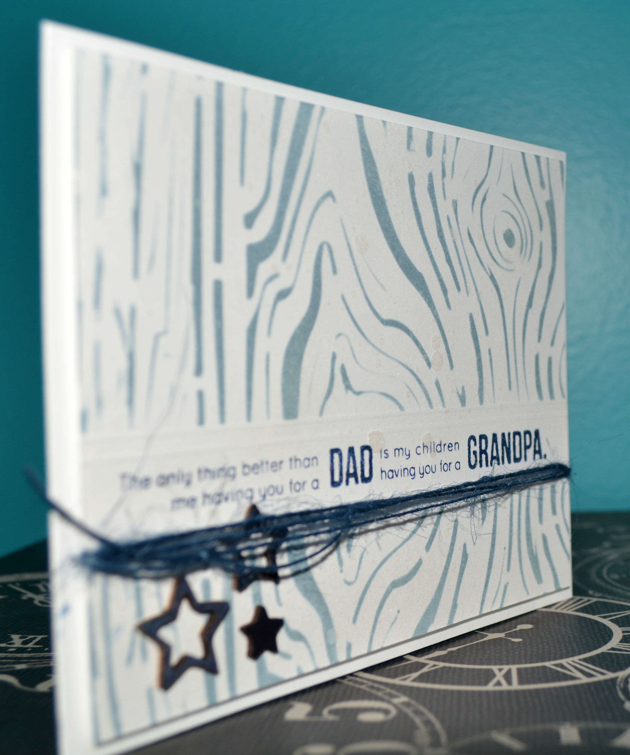 Really did keep this card super simple, inked through a stencil a little spray and jute and wood veneer.